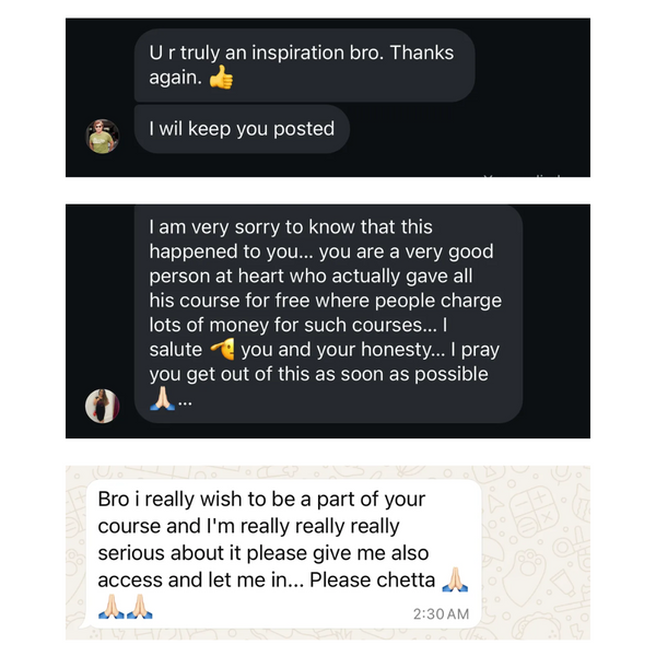 That’s why I’m keeping it simple. If you join the course, watch the modules, and feel like it wasn’t worth your ₹14,999, just send an email to our support team within 30 days. No questions. No begging. No drama. Your refund will be processed ASAP. I’m not here to “trap” anyone. I only want serious people inside.