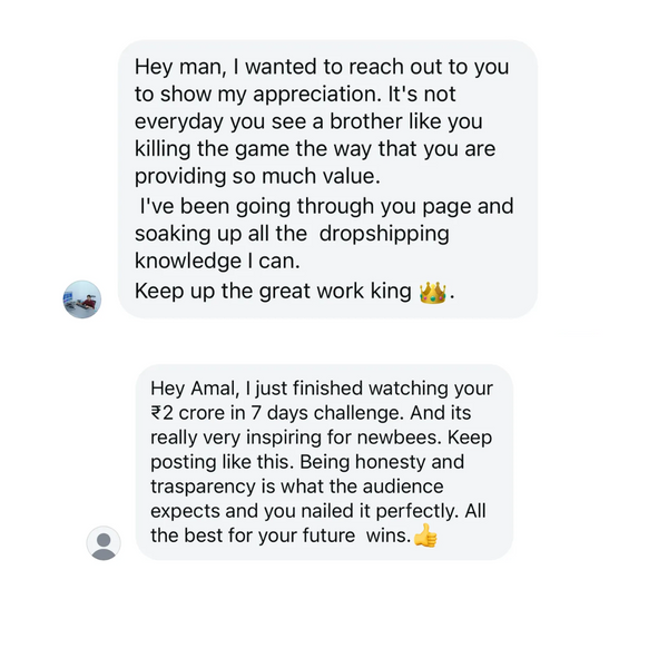People often come and tell me,"Amal, I want to make crores next month". Dropshipping is not get-rich-quick scheme but if you follow my system for 90 days, I can gurantee that you will be making atleast 10 lakh in sales and 1 lakh in profit every month.