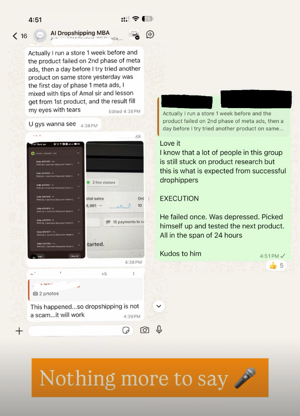 Continue scrolling only if you are 100% sure that you want to start drophipping RIGHT NOW. If its not in your top 3 priority, don't join AI Dropshipping MBA. I want my community to be exclusive for serious builders only.