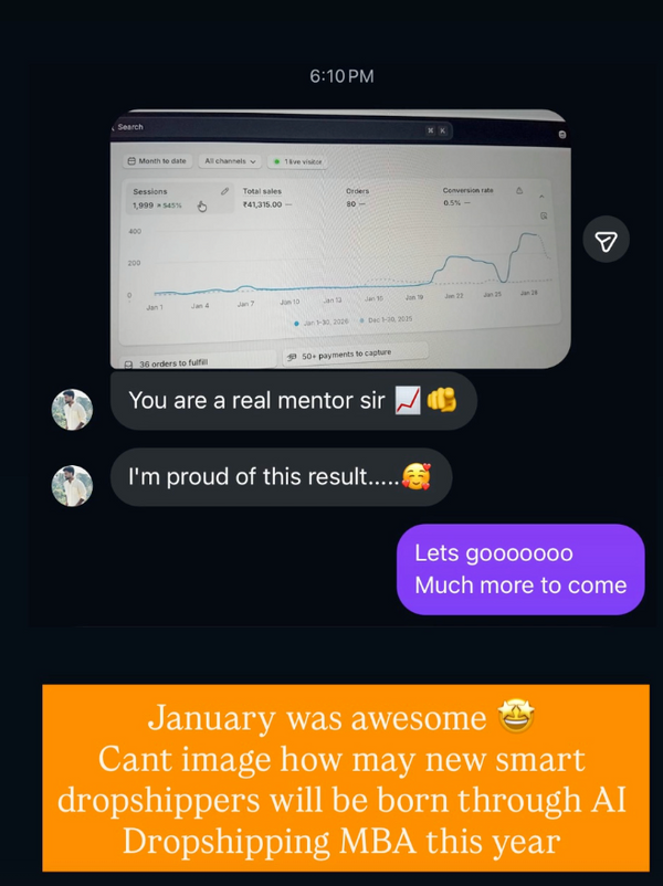 I used to charge ₹3lakh for a 20 session 1:1 mentorship but had to stop that program so that more people get benefitted from me. Hence AI Dropshipping MBA was born.